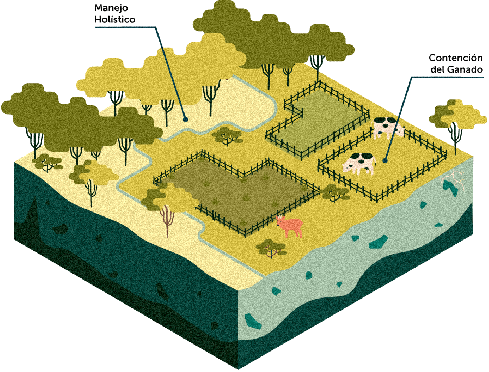 Se propone la implementación de la Ganadería Regenerativa donde se imitan los patrones naturales de los herbívoros en manadas, los cuales van comiendo, pisoteando y bosteando juntos en movimiento. La clave está en que el movimiento del ganado sea capaz de respetar los ciclos de recuperación de los pastos y del suelo, evitando el sobrepastoreo y agotamiento de recursos.